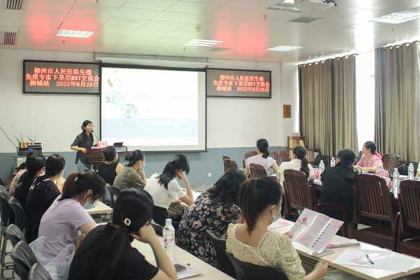 近日,柳州市人民醫院生殖醫學科主任曲曉力博士來到柳城縣人民醫院,與來自柳城縣人民醫院、柳城縣中醫院、柳城縣婦幼保健醫院、柳城縣各鄉鎮衛生院的醫護人員開展了一堂有關于“多學科會診(MDT)”模式的促進疾病診療的交流會,交流會共有39人參加。