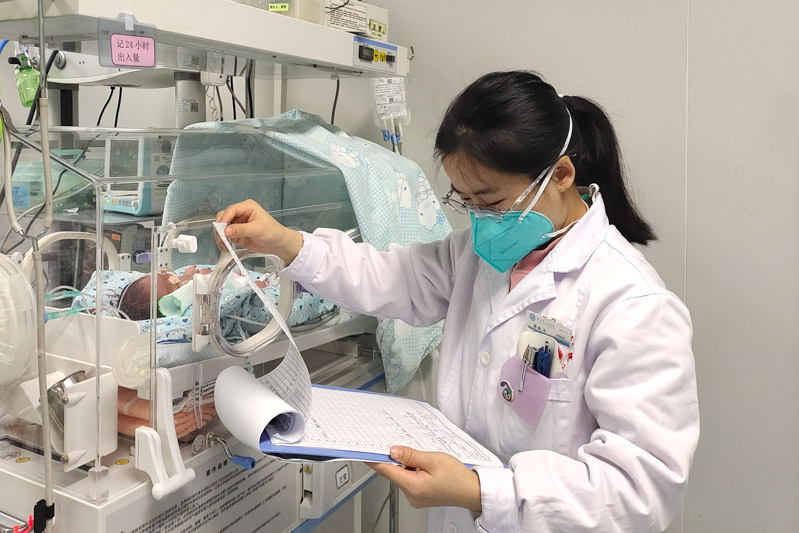 由于琳琳身體的各個器官都沒有發育完全,抵抗力比較低,生活能力比較差,容易并發疾病、出現一系列問題,所以護理就顯得特別重要,護士們像對待嫩豆腐一樣,精心呵護著她。暖箱采取“鳥巢式”的護理,給她一個安靜舒適的睡眠環境;為了防止患兒稚嫩皮膚造成壓瘡,給她使用水袋,為了保護皮膚,避免出現各種皮膚問題,每天進行油浴;病情穩定時還對她進行了撫觸,促進神經系統發育、智力發育,促進胃腸道蠕動,逐漸適應經口喂養,并且通過撫觸給予安全感,增強了感情交流,給予母親般的愛。