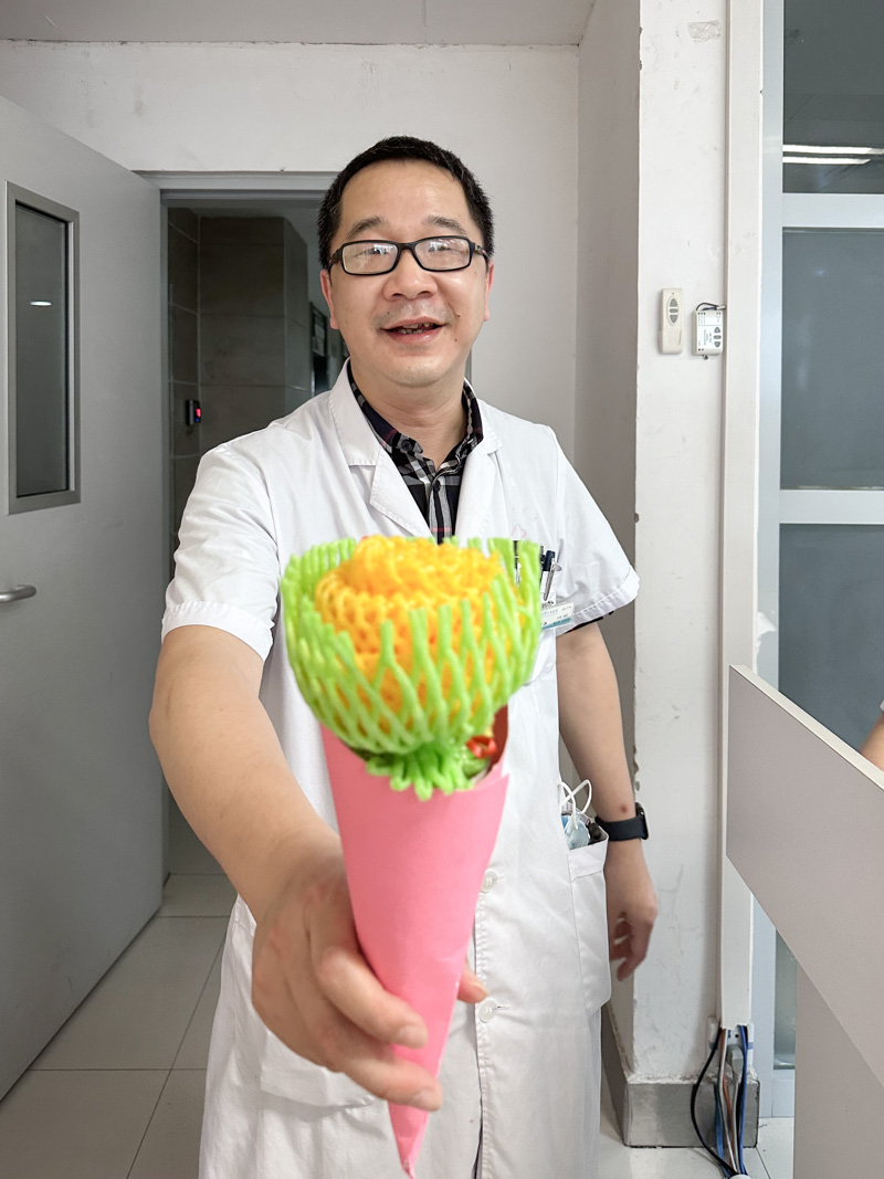 當(dāng)日上午,兒科主任金伶帶領(lǐng)醫(yī)護人員為住院的孩子們送上了小禮物與節(jié)日祝福。