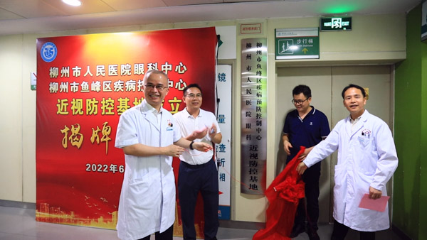 隨后,各位領導一起為柳州市人民醫院近視防控基地揭牌。