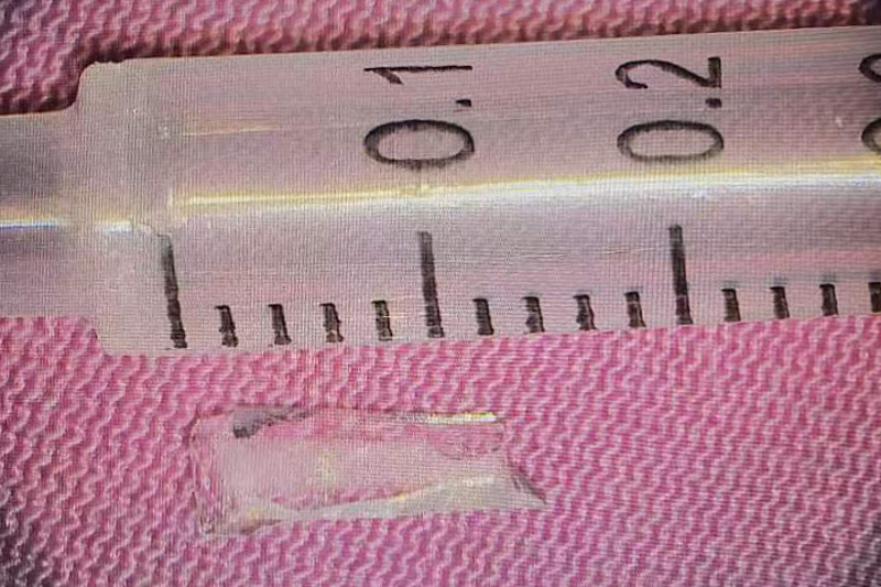 但該眼內手術難度很大,稍有不慎就可能出現眼內出血、眼內感染、玻璃片術中再次掉落損傷視網膜甚至黃斑部的風險。為確保手術萬無一失,眼科團隊做了詳細、周密的術前準備。術中使用微創23G玻璃體切割系統,在眼球上建立直徑為毫米級別的套管通道,使用顯微器械進行手術處理。通過顯微鏡可以看到視網膜上亮晶晶的玻璃碎片,玻璃碎片表面光滑,大小是手術切口的十倍左右。施術者小心翼翼從碎片兩側頭端、側面輕輕翻開嘗試夾取,稍有不慎,就會損傷視網膜,造成二次傷害。最終憑借高超的技巧,將長1.4cm的玻璃碎片成功取出,保住了患者的眼球。