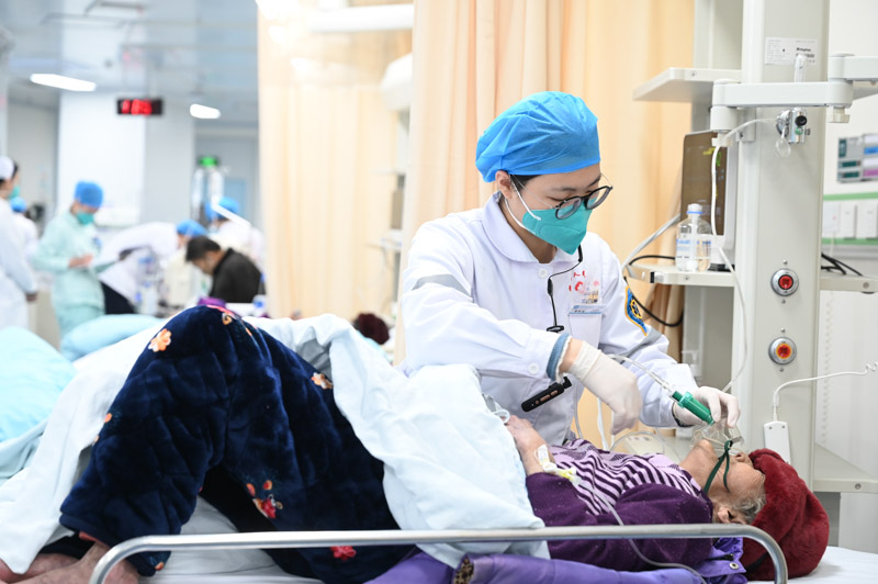 據統計,進入12月以來,急診醫學科一直處于“爆滿”狀態,為了不讓任何一名患者延誤治療,急診醫學科主任甘濤率團隊與相關科室及時溝通對接,開放院內無縫銜接的24小時急救綠色通道,聯合各科室將患者及時分流,使患者盡快接受進一步診療。