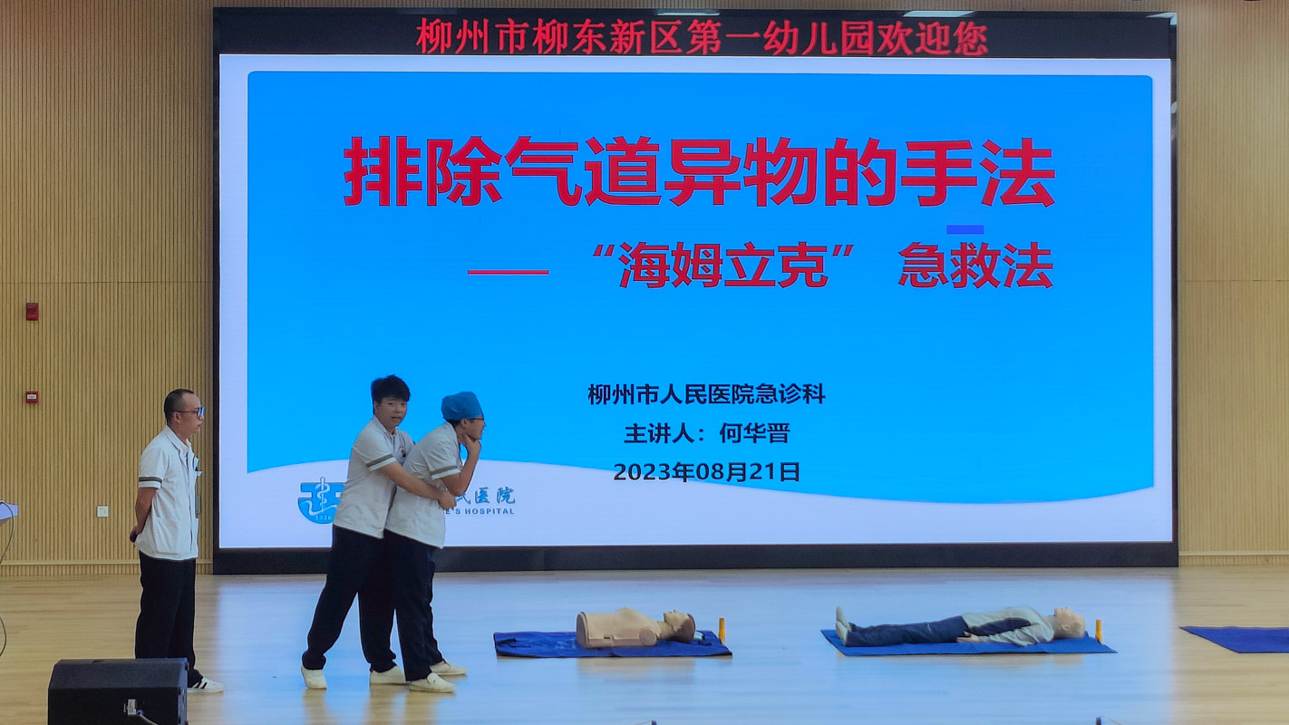 為進(jìn)一步提高教師安全防范意識和自救互救能力,在校內(nèi)遇到突發(fā)意外傷害時能夠進(jìn)行初步有效處理,8月21日下午,柳州市人民醫(yī)院市民急救學(xué)校醫(yī)護(hù)人員來到柳東新區(qū)第一幼兒園,開展“關(guān)注幼兒健康,助力校園安全”為主題的應(yīng)急救護(hù)相關(guān)知識培訓(xùn)。本次培訓(xùn)共有109名教師參加。