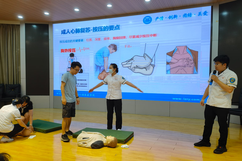 活動(dòng)中,醫(yī)護(hù)人員以心肺復(fù)蘇和海姆立克急救法相關(guān)內(nèi)容,向廣大師生進(jìn)行了具體生動(dòng)的演示與講解。“評(píng)估現(xiàn)場(chǎng)、安全有序、緊急呼救、及時(shí)救護(hù)”十六字的總結(jié)言簡(jiǎn)意賅,重點(diǎn)突出。