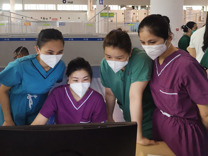 2022年8月,李桂湘聞令而動,跟隨柳州市人民醫院援瓊醫療隊赴海南??诜脚撫t院支援。作為護理小組副組長,她憑借在科室積累的防控工作經驗,帶領組員們全副武裝,在方艙里緊張而又有條不紊地忙碌著。