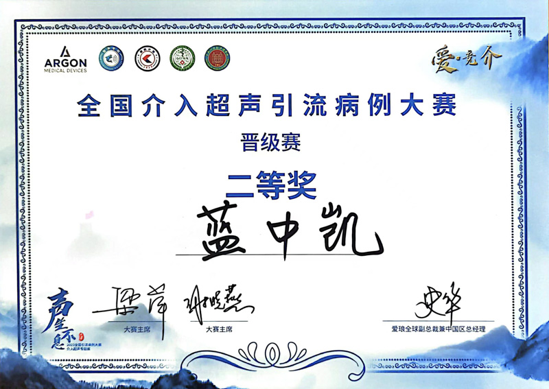 6月3日,從“‘聲生不息’2023年全國引流病例大賽介入超聲專題賽”會場傳來振奮人心的好消息,柳州市人民醫(yī)院超聲醫(yī)學(xué)科藍中凱醫(yī)師作為廣西僅有的兩名代表之一,在全國介入超聲引流病例大賽華南賽區(qū)晉級賽中榮獲二等獎!