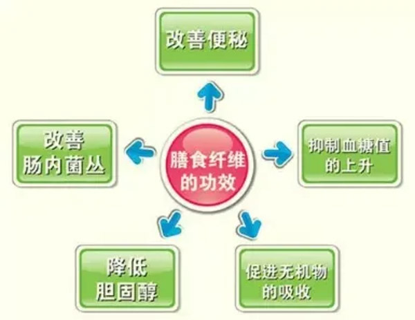 流行病學研究表明,許多常見慢性病和動脈粥樣硬化、高血壓、冠心病、糖尿病、便秘、肥胖及結腸癌等腫瘤的發生,均與膳食纖維的攝入不足有關。因此,膳食纖維對人體健康的重要作用已日益受到人們的關注。