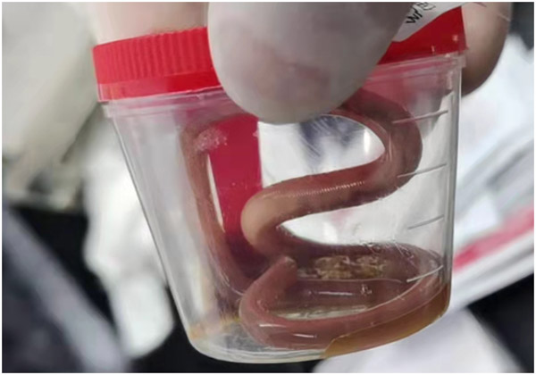 “哎喲,好大只的蟲啊!”在門急診化驗室體液操作臺前,檢驗技師手里拿著一個透明的標本盒在打量著,里面塞了一只體積龐大正在蠕動的蟲子,蟲體將標本盒塞得滿滿的,長得像蚯蚓一樣,值班的檢驗師們看到此情此景,也覺得不可思議。