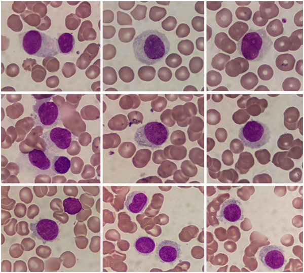 入院后醫生對嚴先生進行了各項檢查,發現患者血常規結果提示血小板減少,單核細胞增多,醫學檢驗科立即又進行了血涂片及骨髓片鏡檢,兩片鏡下均發現一類細胞胞體中等,多類圓形;胞核多圓形,偶見凹陷,染色質纖細疏松;胞漿量多,灰藍色或淡藍色,偶見空泡,邊緣有絨毛突起,形如“煎雞蛋”。