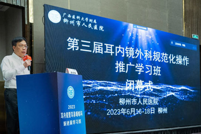 最后,柳州市人民醫(yī)院耳鼻咽喉科主任李紀輝主任為大會總結(jié)。他表示,隨著社會的發(fā)展及生活質(zhì)量的提高,人們對耳鼻咽喉頭頸外科尤其耳科手術(shù)要求越來越高,不光要盡可能清除病灶,還要保護并提高聽力,減少對耳部周圍組織的創(chuàng)傷。本次會議作為近三年來首次的線下學(xué)習(xí),通過專家專題面對面的講解、答疑以及細致的分享,使大家對耳內(nèi)鏡手術(shù)的理論、技術(shù)規(guī)范、發(fā)展現(xiàn)狀及未來的展望有了深入的認識,促進了區(qū)內(nèi)外耳科學(xué)者的交流與合作,推動耳內(nèi)鏡事業(yè)的發(fā)展。