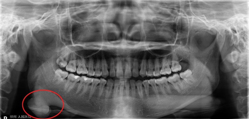 口腔科副主任醫師劉彥杰為唐女士做了仔細檢查,發現不是唐女士的臉越長越“方”,而是一顆骨性瘤子在作怪,這顆骨瘤正好就長在右側下頜角的位置。