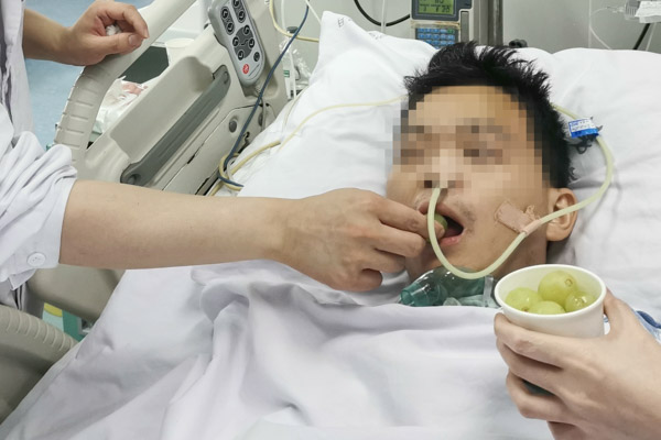 在2021年醫師節這一天,蔡天斌副主任醫師來到阿正床旁,給數日未經口進食的阿正吃上了葡萄,阿正說這是他這輩子吃到最甜的葡萄,這也是阿正送給所有醫生最厚重的節日禮物!后續阿正轉入普通病房進行康復治療,9月7日阿正康復出院。