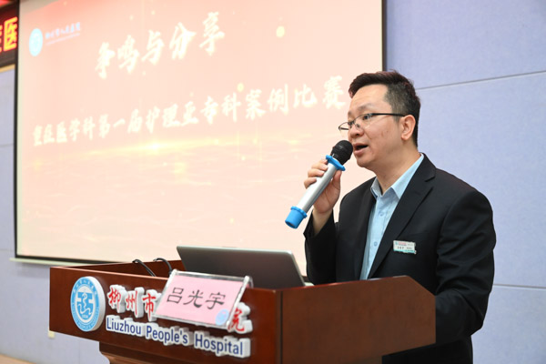 開幕式由重癥醫學科主任呂光宇致辭:柳州市人民醫院重癥醫學科護理質量的提高,離不開近年來護理亞專科的發展。急危重癥患者的管理步步驚心,迫使我們必須嚴密地觀察,做出最直接準確的選擇,走不得彎路。希望通過多個臨床病例鍛煉出縝密的臨床思維、觀察和專業的處置能力,并能有效融合多方面有利于重癥專業發展的力量,堅持創新,加強學科建設和年輕護理人才培養,將學科做細做優高質量可持續發展,提供專業、優質的重癥服務。
