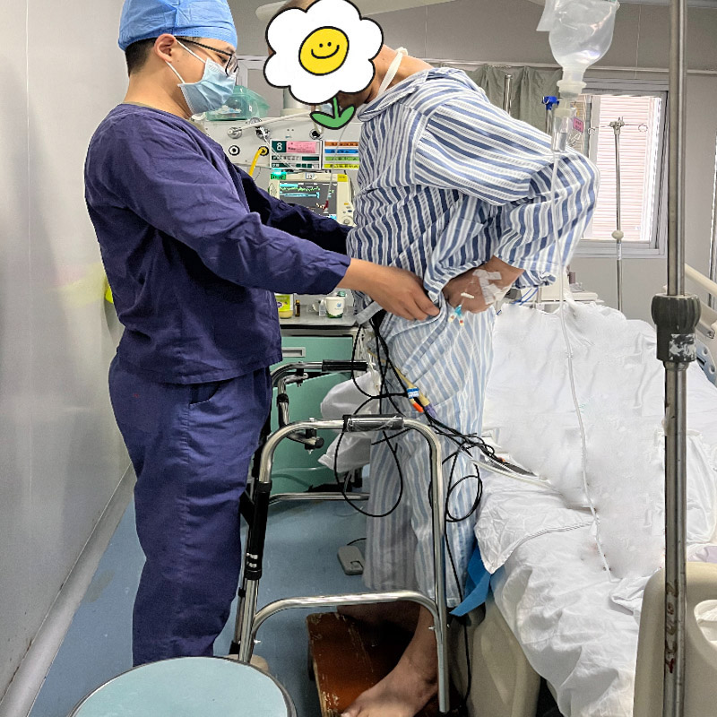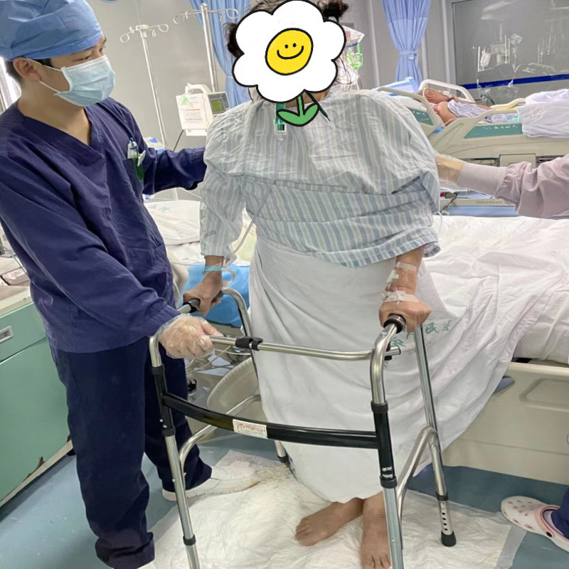 幾日后,雖然患者順利撤離ECMO,但仍需CRRT治療維持內環境穩定,以及血管活性藥物維持血壓穩定。經過重癥醫學科、心臟外科治療團隊全面縝密的評估,一致決定要讓患者“動”起來,減少ICU 獲得性肌無力等并發癥的發生。