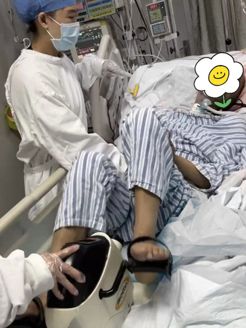 “來,跟著機器一起做腳踏車運動。”日前,在柳州市人民醫院重癥醫學科,重癥康復小組正幫病友黃先生做康復訓練。