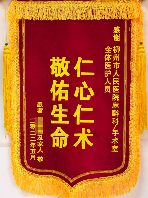 “這大概是我最近幾年睡得最踏實、最滿足的一覺了。等我醒來手術已經做完了,全程無痛感,真的太厲害了,謝謝你,我的麻醉醫生……”這是劉阿姨(化名)關于手術當天的所有回憶,她感謝麻醉醫師為自己提供安全、有效并且溫情的麻醉服務,把寫有“仁心仁術,敬佑生命”八個大字的錦旗送到了麻醉科手術室。