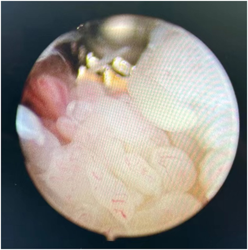 做好充分的術前準備后,醫生使用關節鏡微創技術,通過2個0.5厘米大小的切口為丁伯進行了關節鏡下的滑膜清理手術治療。術中發現腕關節內大量的炎性增生滑膜,部分滑膜已經開始侵蝕關節軟骨。這些像水草一樣的增生滑膜正是丁伯腕關節反復腫脹疼痛的罪魁禍首。