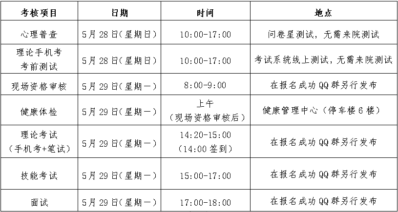 現(xiàn)場(chǎng)資格審核后進(jìn)行健康體檢,體檢需空腹,費(fèi)用自理(含早餐)。健康體檢具體事項(xiàng)在報(bào)名成功QQ群另行通知。