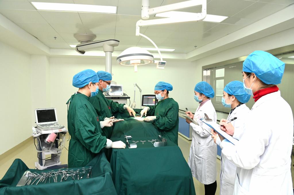 臨床技能培訓中心于2017年開始投入使用,中心位于我院實訓樓5-6層樓,建筑面積2307.2平方米,環境整潔、寬敞明亮,囊括了內、外、婦、兒、急救、五官科及護理七大模塊,設有模擬ICU、模擬手術室和模擬產房、基礎技能訓練室等25間實訓室,融多功能、多學科、網絡化、電子監控、開放性等特點的現代化臨床技能培訓中心。中心培訓方式多樣化,集中培訓、專項培訓、學員自助培訓相結合,在保證臨床技能訓練、臨床教學效果方面發揮了良好的作用。