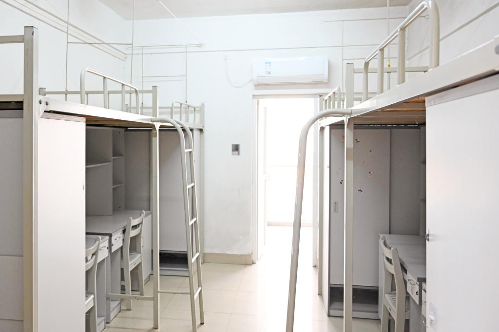 學生公寓位于院區內,宿舍實行公寓化管理,4人/間,每間宿舍有空調、熱水系統、獨立衛手間、洗漱臺、陽臺,每張床配備書桌、衣柜等,配備公共洗衣機、微波爐。