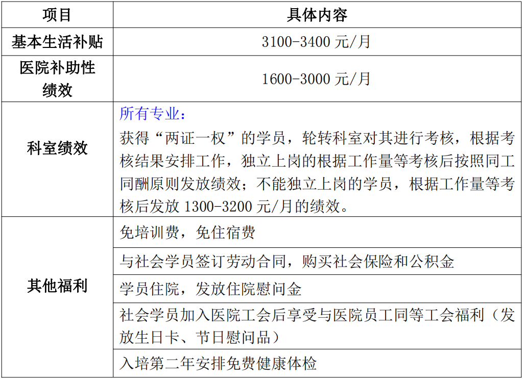 (二)培訓基地嚴格落實“兩個同等對待”政策,對面向社會招收的普通高校應屆畢業生培訓對象培訓合格當年在我院就業的,在招聘、派遣、落戶等方面,按當年應屆畢業生同等對待;對經住培合格的本科學歷臨床醫師,在招聘、職稱晉升、崗位聘用、薪酬待遇等方面,與臨床醫學、中醫專業學位碩士研究生同等對待。