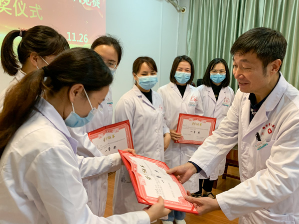 頒獎儀式上張步林基地主任充分肯定了這次競技活動,學員們的操作技能和臨床思維得到了一次很好的鍛煉,達到了練兵的目的,感謝老師們的精心組織和學員們的積極參與。同時張主任對每個環節作出點評,指出了學員操作技能上存在的不足,并對知識競賽易錯題進行點評講解,希望學員不斷夯實理論基礎,強化臨床思維訓練,提升崗位勝任力,為明年的結業考核做好充分準備;同時也希望導師們在住培工作中要瞄準問題、聚焦難點、持續改進。希望在下一屆競賽改進賽制,建議導師參與其中,師生互動,同臺切磋競技。日后我們將以賽促學,以賽促訓,為實現“聚焦質量,提升內涵、促進同質”的住培目標而不懈努力。