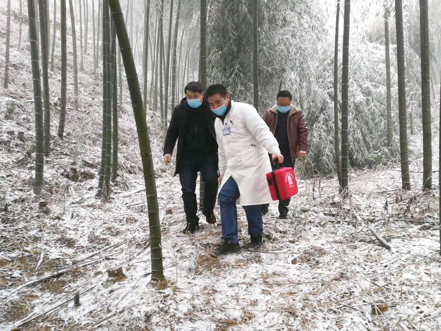 桿洞鄉地處偏僻,距縣城140公里,且山路崎嶇。大雪封山、道路塌方、交通阻斷常常讓梁駒的接送患者之路倍加艱難。一次下著蒙蒙細雨,梁駒接到出診電話,到現場看到一人翻車躺在公路下面奄奄一息,梁駒帶著兩位家屬一步一步的試探,半滑著下到路底,發現患者腰椎骨折,截癱,已經休克,需緊急處理,為了保持患者平躺的姿勢不出現二次損傷,梁駒和家屬還有司機,手腳并用抬著擔架在泥濘中一步一步爬上公路,將患者安全抬到救護車里。而這樣的場景在桿洞鄉并不少見,轉運患者遇到大霧時,醫護人員走在車前探路;遇到冰雪時,梁駒帶著醫護人員給車子上防滑鏈下車推車;遇到道路塌方時,他們就用人工擔架抬病人過塌方路段......生命至上,只要有機會,他們就永不放棄。