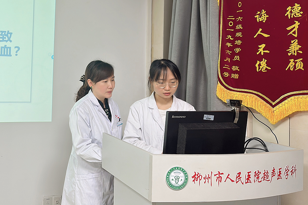 柳州市人民醫(yī)院超聲醫(yī)學(xué)科一直致力于住培基地的建設(shè),秉著立德樹(shù)人的教學(xué)理念,定期對(duì)學(xué)員們進(jìn)行專(zhuān)業(yè)考核、病例匯報(bào)等教學(xué)成果檢驗(yàn),以促進(jìn)住培學(xué)員們的快速成長(zhǎng)。今后,科室將不斷優(yōu)化住院醫(yī)師技能培訓(xùn)及專(zhuān)業(yè)指導(dǎo),為培養(yǎng)出能力過(guò)硬、德才兼?zhèn)涞母哔|(zhì)量醫(yī)學(xué)人才而不懈奮斗!