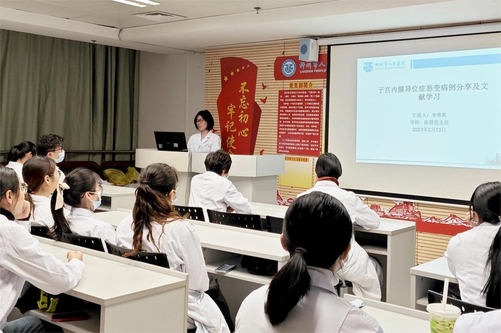 講課學(xué)員經(jīng)過前期的精心備課和試講訓(xùn)練,結(jié)合住培期間學(xué)習(xí)到的臨床經(jīng)驗,進(jìn)行了精彩的授課。2020級謝守權(quán)同學(xué)根據(jù)在住培學(xué)習(xí)中積累的相關(guān)臨床經(jīng)驗,對《絕經(jīng)過渡期和絕經(jīng)后期子宮內(nèi)膜增生長期管理中國專家共識》(2022版)書本知識進(jìn)行了縱向梳理;2020級陳秀秀同學(xué)講課的題目是《宮腔粘連》,并結(jié)合大量的手術(shù)圖片闡述自己對宮腔粘連臨床表現(xiàn)和治療的理解;2021級李秀英同學(xué)講授的《一例子宮內(nèi)膜異位癥惡變病例分享及文獻(xiàn)學(xué)習(xí)》一課,通過結(jié)合臨床少見病例和參考文獻(xiàn),授課內(nèi)容具備一定的臨床與科研思維;2022級的李玲玲同學(xué)和侯茂偉同學(xué),分別對《子宮平滑肌瘤》《妊娠高血壓疾病》進(jìn)行課本讀書筆記整理放送。