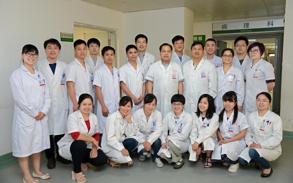 科室病理活檢量在全區居第三位,重視亞??茍F隊建設和發展,根據科室特色及人員配置,成立了淋巴造血系統、消化系統、呼吸系統、內分泌系統、乳腺及女性生殖系統、頭頸部及神經系統、泌尿及男性生殖系統、軟組織骨關節及皮膚疾病、分子病理共9個亞???。除了開展組織學病理、細胞學病理、快速病理等常規病理檢查項目外,率先在桂中地區獨立開展原位雜交、熒光原位雜交(FISH)、熒光定量PCR等分子病理檢測項目,具有較強的病理技術、病理診斷和疑難病理會診診斷能力。